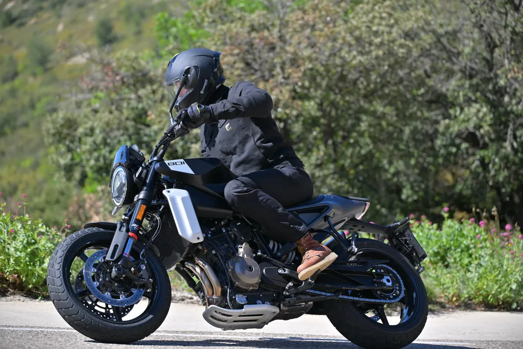 So where does it sit and with what does it compete? Ducati’s current Scrambler range run exclusively on 17’s and command similar desirability, but on paper, the Svartpilen’s digits are far closer to those of the road-biased Monster. Fantic’s 700 Caballero came up in the breakfast-brainstorm along with both the seven and nine hundred XSR Yamahas, the KTM 790 Duke with which it shares a power-unit also entered the discussion. The blend of references and press-kit directives may suggest a machine with an identity crisis, but the motorcycle itself is crystal clear.