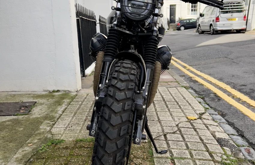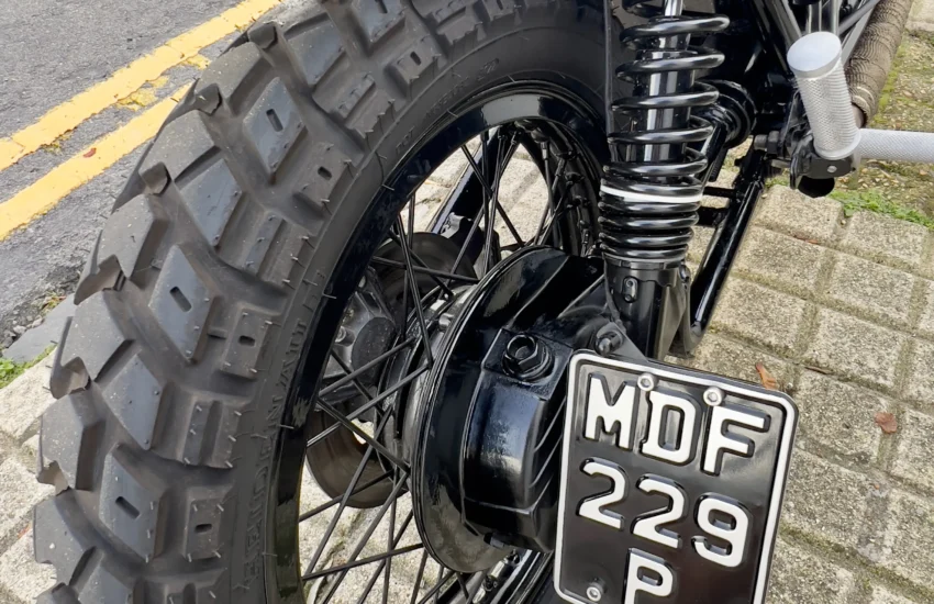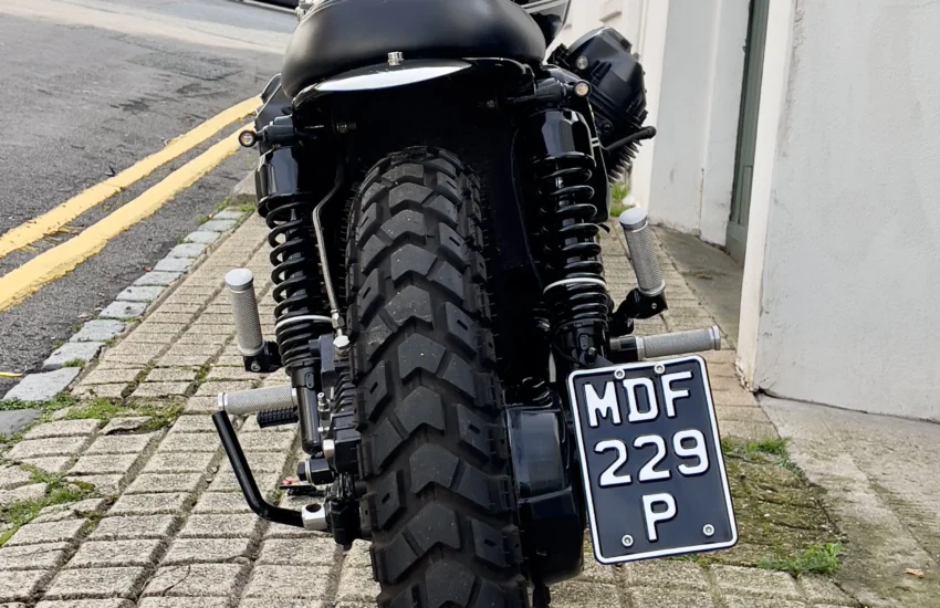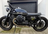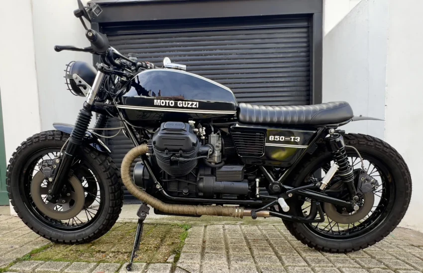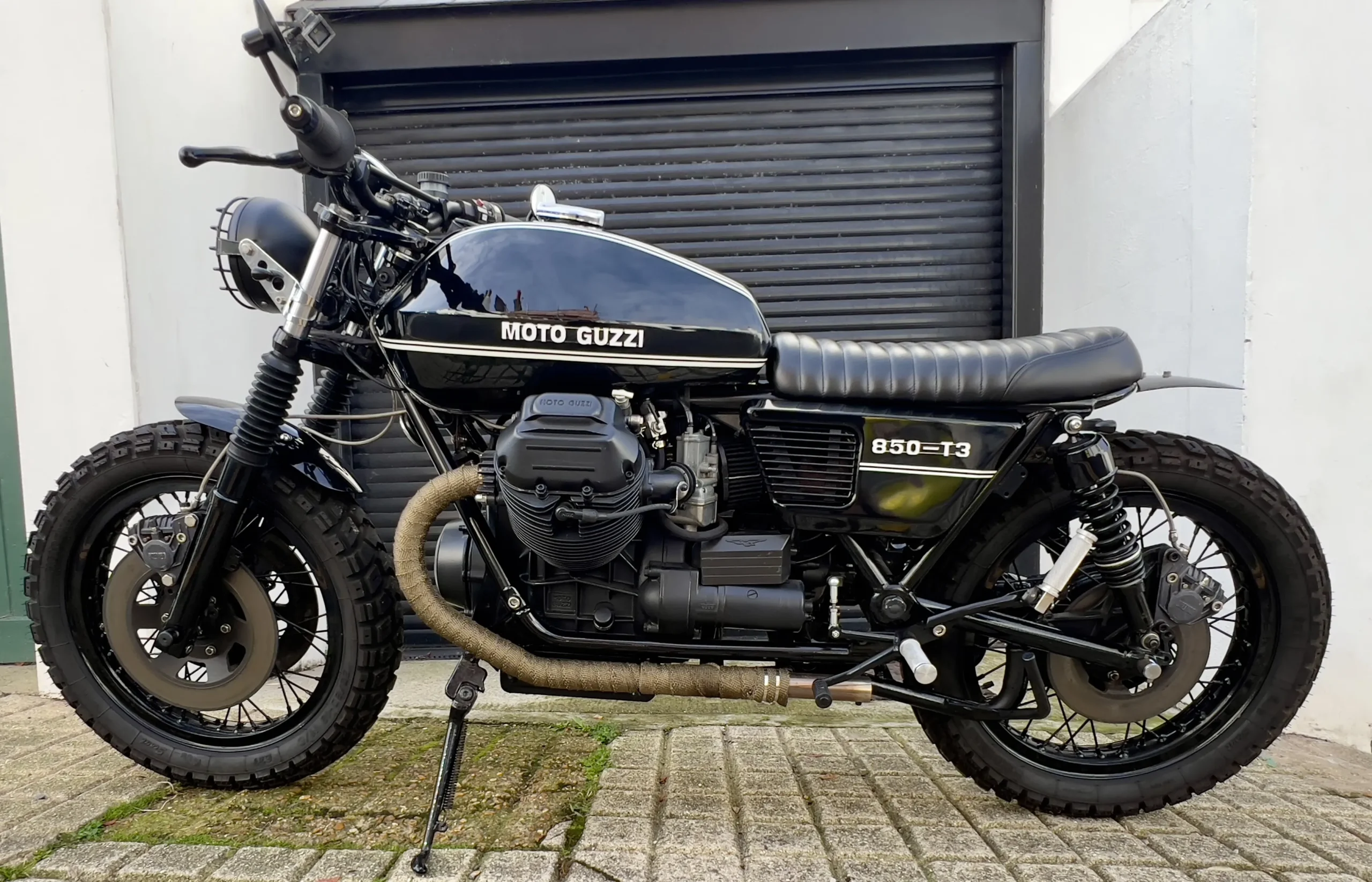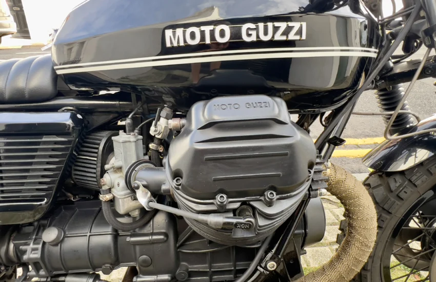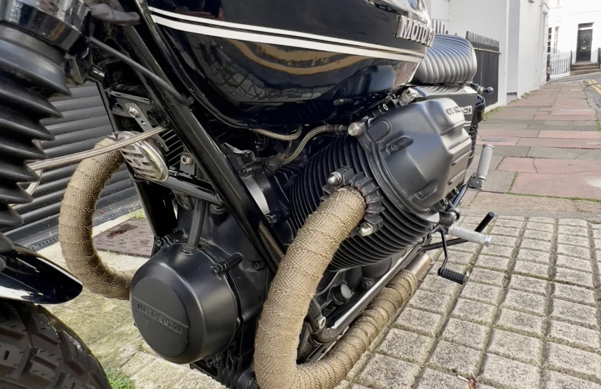 A true Italian classic with modern upgrades. Original matching-numbers V-twin and Tonti frame paired with tasteful custom work: twin wrapped exhausts, shortened tail with custom seat, upgraded rear shocks, LED lighting, Daytona speedo, scrambler bars, Heidenau K60 tyres, and tidy side-mounted plate. Still proudly finished in Guzzi Black with restored decals and hand-painted pin-striping.