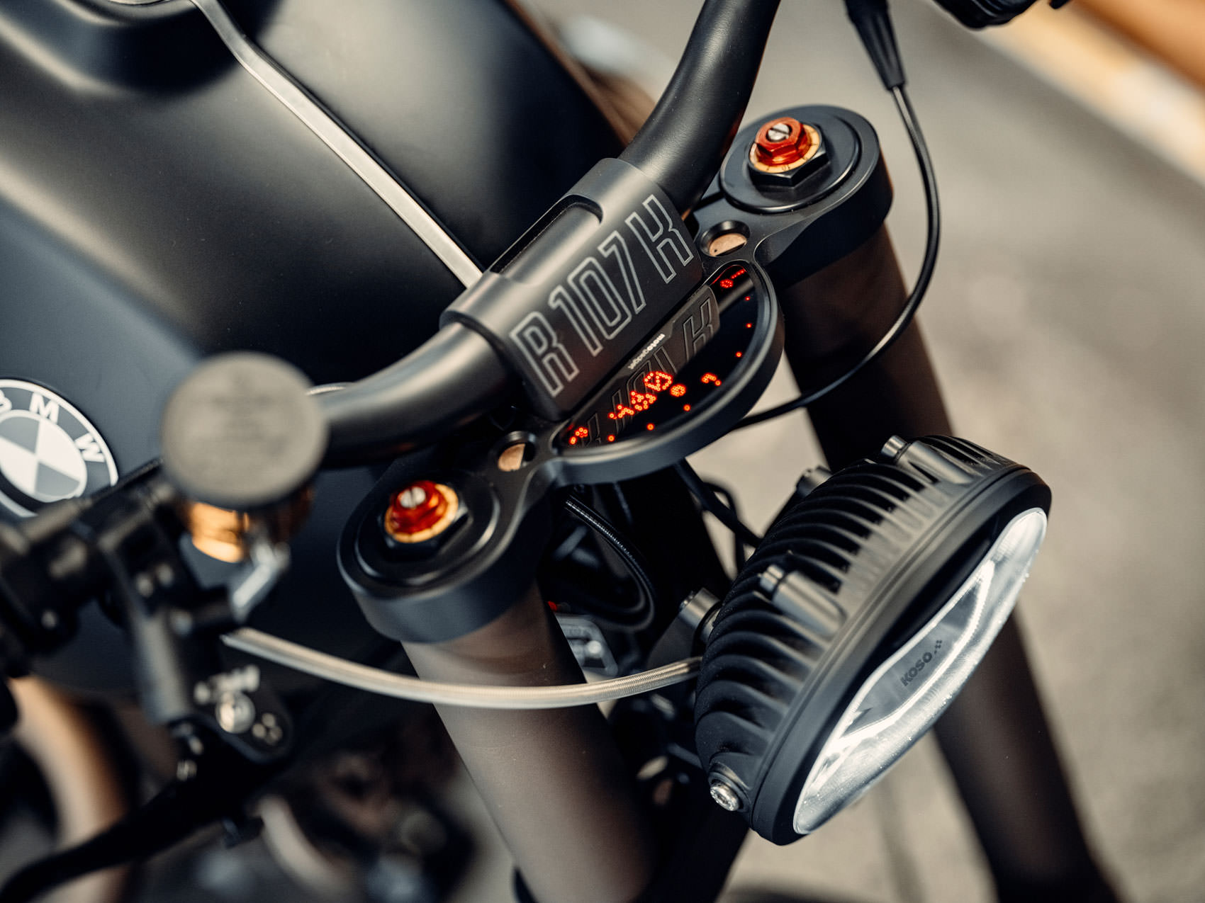 – Tank skins designed to look like the R100 fuel tank but with lines to match the design of this bike.