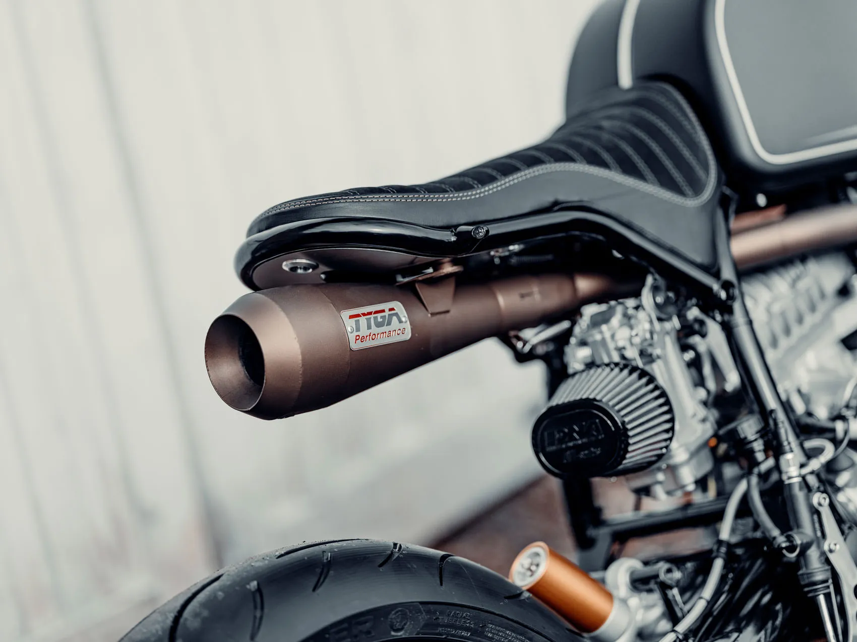 – Ceramic coated, mandrel bent, stainless steel up and over tuned exhaust with TYGA Moto-GP style muffler.