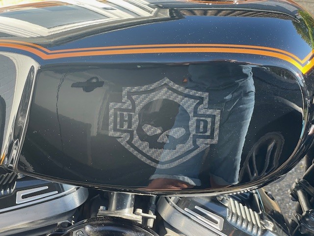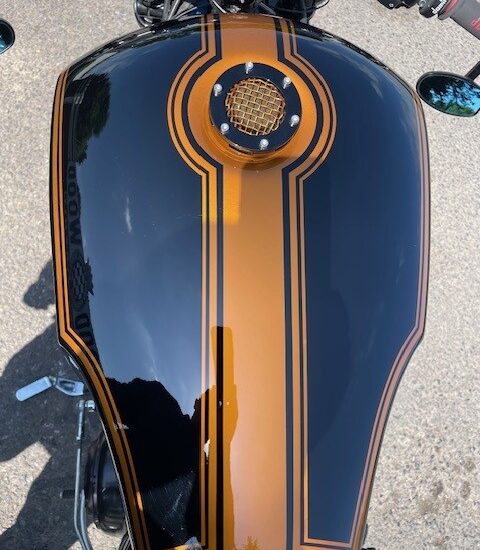 One-off hand-crafted fuel tank with carbon fibre detailing.