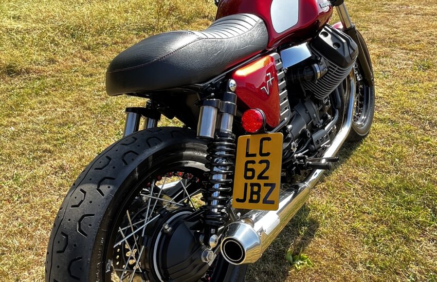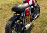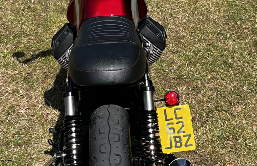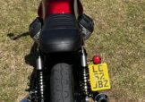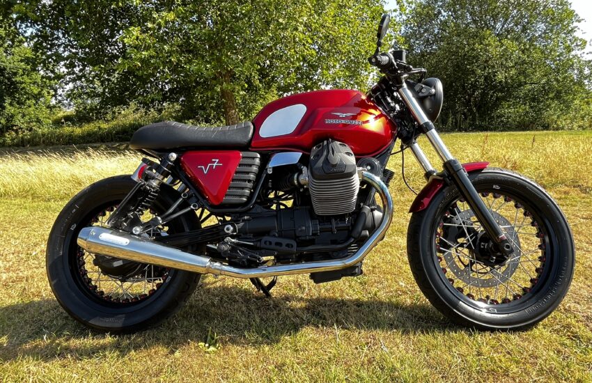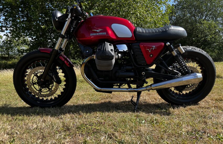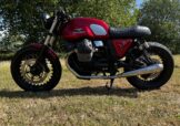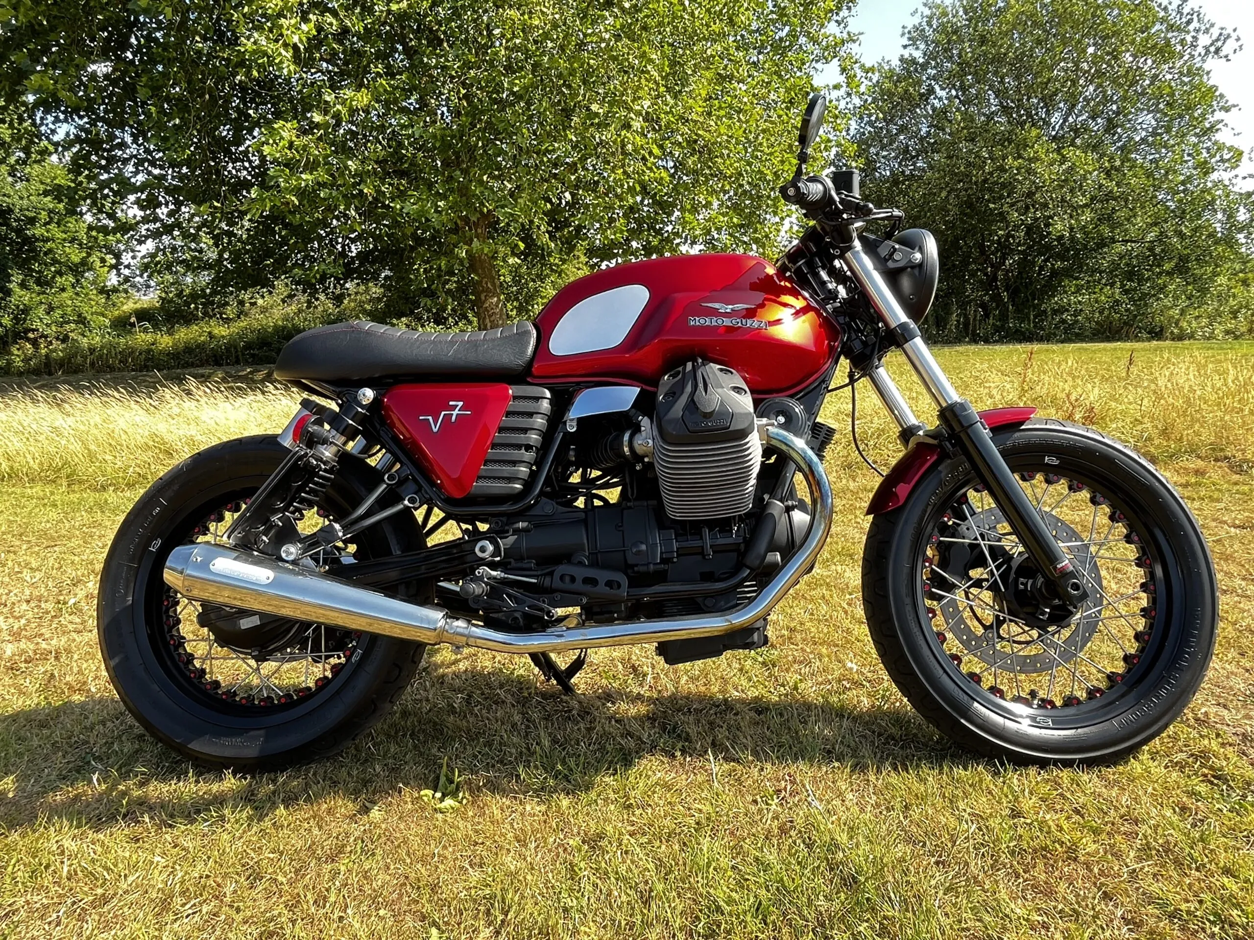 This Moto Guzzi V7 Stone Custom is a real head turner. Commented on and photographed whenever it leaves home. Truly one of a kind and so much fun to ride the inverted V twin. Character building!