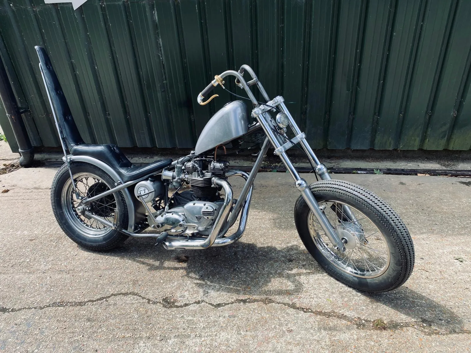Frisco style chop using a 1965 Triumph T120 650 engine and rear wheel hub.