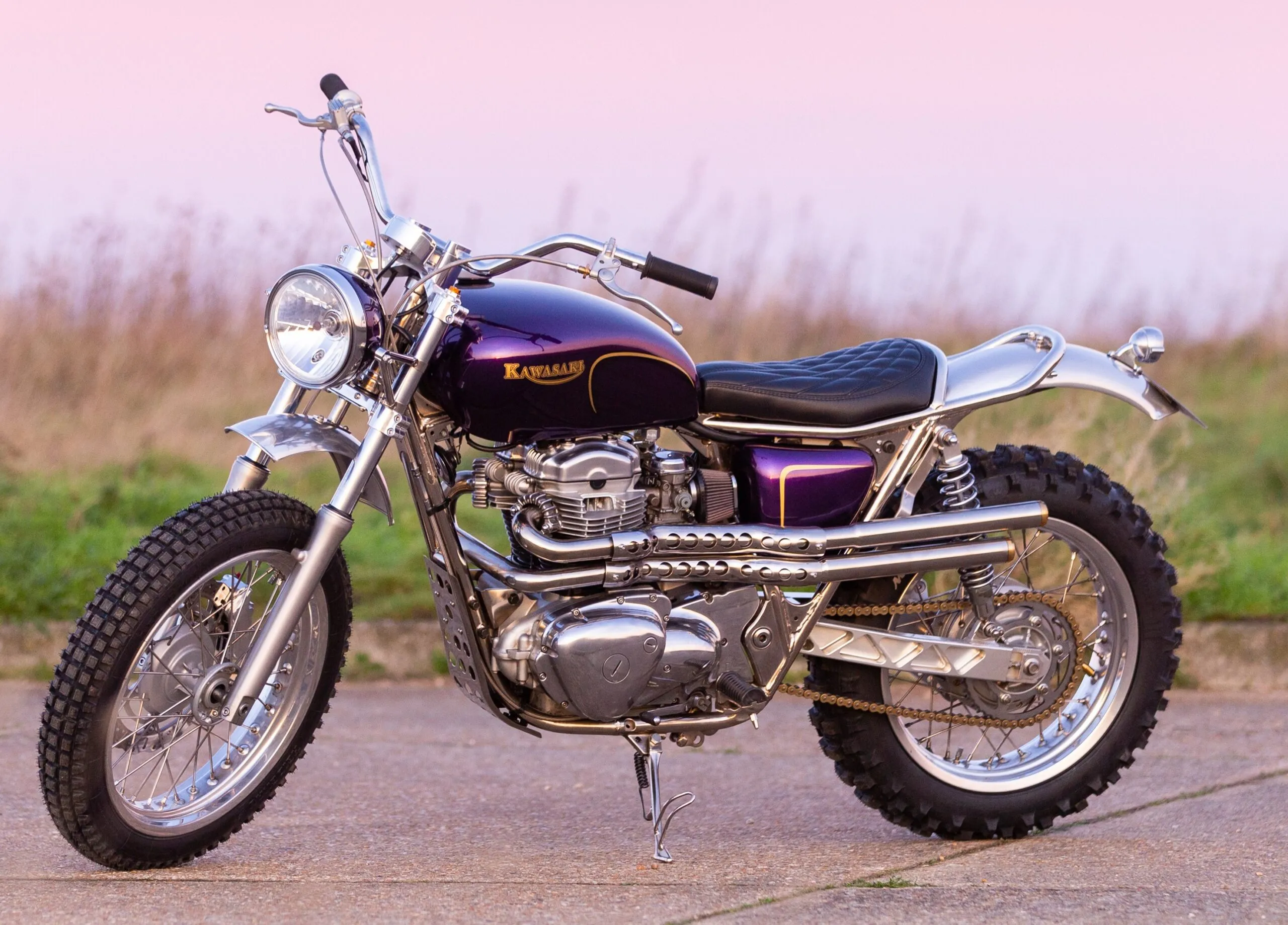 Secondly, the paint, Arnie at Kustom Tech has laid down the most incredible layered and sparkly purple I’ve ever seen. My brief was to take the OEM Kawasaki purple from the 70s and make it 10x blinger, Arnie delivered and the photos speak for themselves. There isn’t a single angle where this bike doesn’t look incredible in the sunshine.